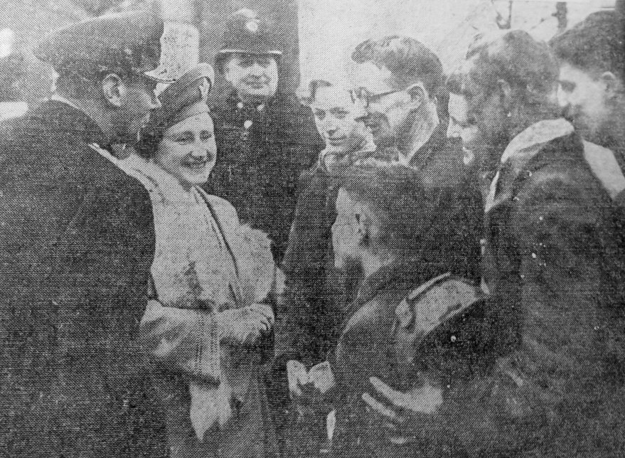 It was such a warm, intimate, and informal introduction that John Hadley Saxby, eight months old, liege, and subject of King George VI, had with Their Majesties. It was a rare distinction and it happened just outside the door of the canteen as the King and Queen were about to enter. Mr. John Saxby, 162, Wath Road, Elsecar, who is employed at Elsecar Main, stood near the door with John Radley, heavily muffled in a brown check wool shawl against the biting wind, held up in his arms. The Queen looked at the babe and smiled understandingly. Then she graciously chucked him under the chin and John, (seemingly conscious of the high honour conferred upon him) gurgled his appreciation and smiled spaciously under his white wool cap. The Queen remarked to Mr. Saxby, “What a fine little boy. How old is he?” a man might have made a bad guess as to sex. Mr. Saxby doffed his cap and replied, whereat the Queen remarked, “And is he yours?” I think he looks very sweet,” said the Queen “and so do all these little children around.” Mr. Saxby told the Queen he was very pleased she had spoken to the baby. He said his wife would be pleased also. Unfortunately, she was ill and had to stay at home. “There would be good news for her when he got home. Mr. Saxby said that was the very first time he had seen the King and Queen in person and the fact that they had spoken to him made him feel that it was his lucky day.