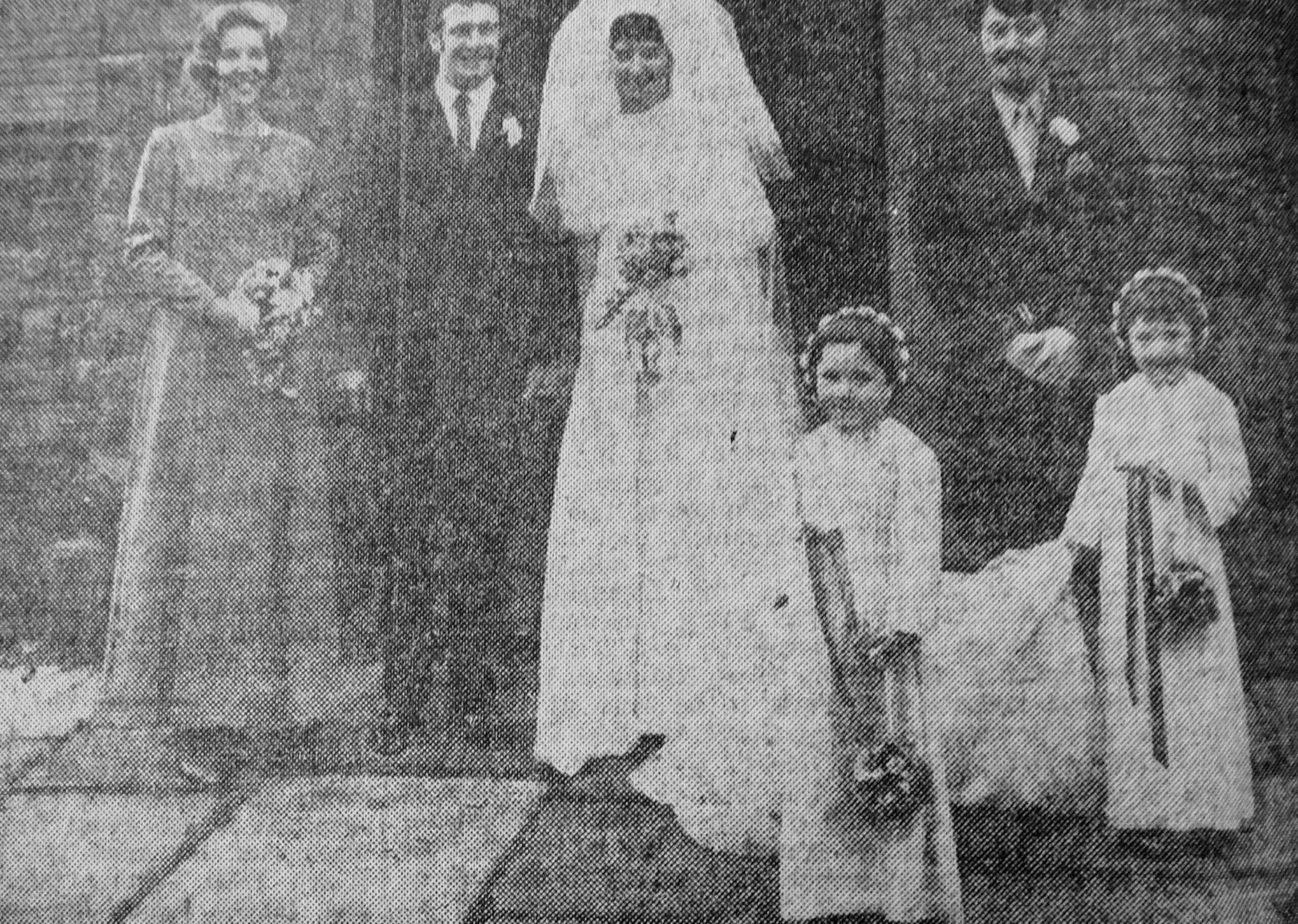 Miss Phyllis Fletcher and Mr. Douglas Bell (both of Thurnscoe), who were married at St. Helens Thurnscoe, on Saturday.